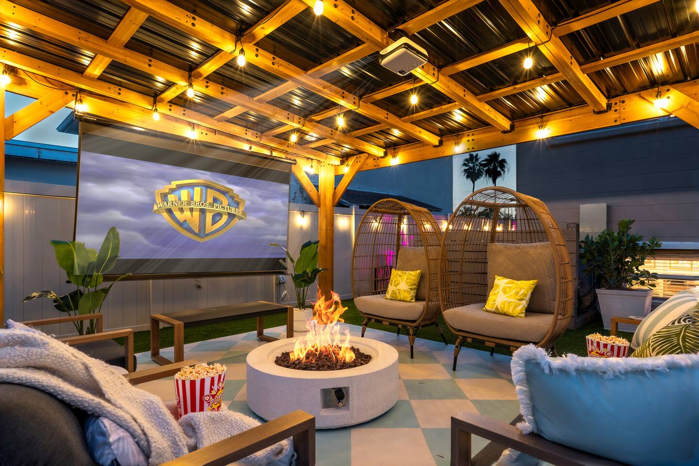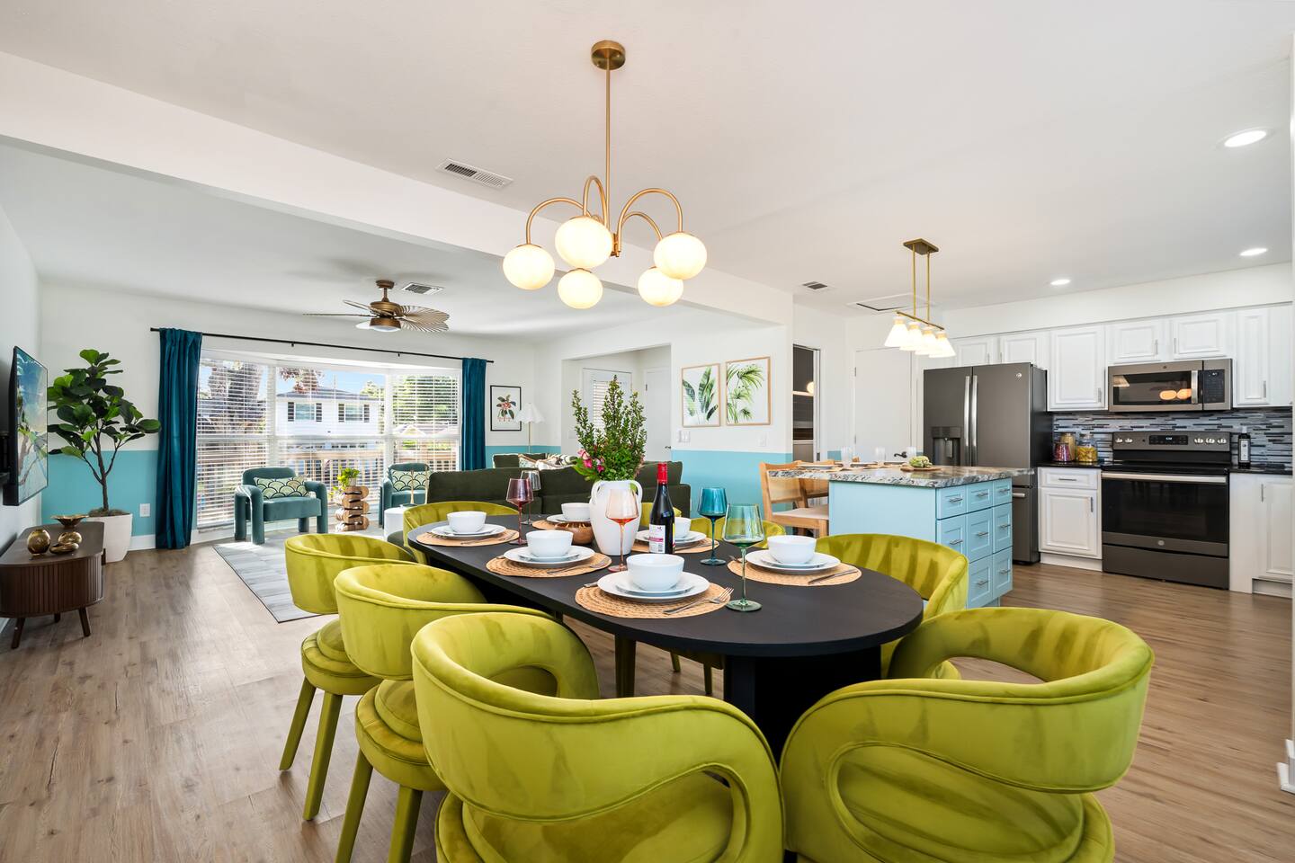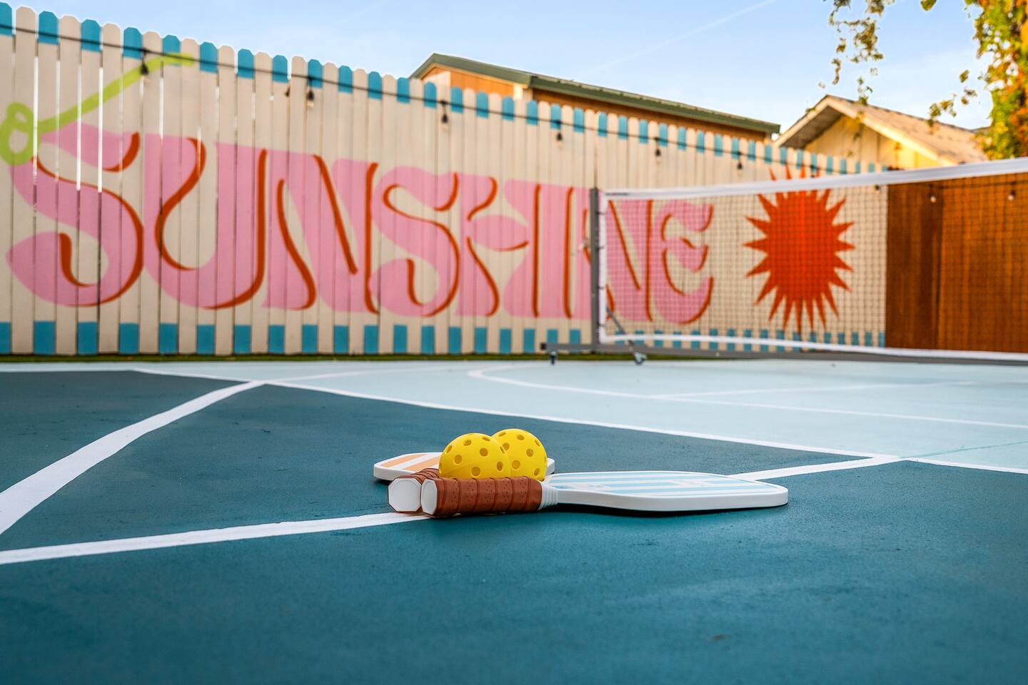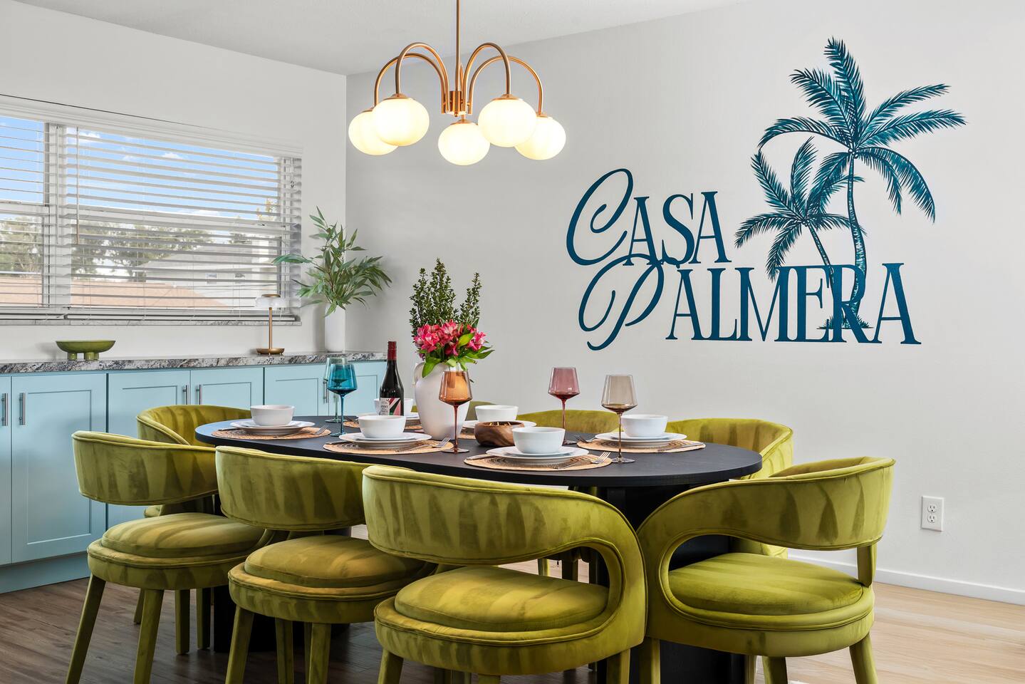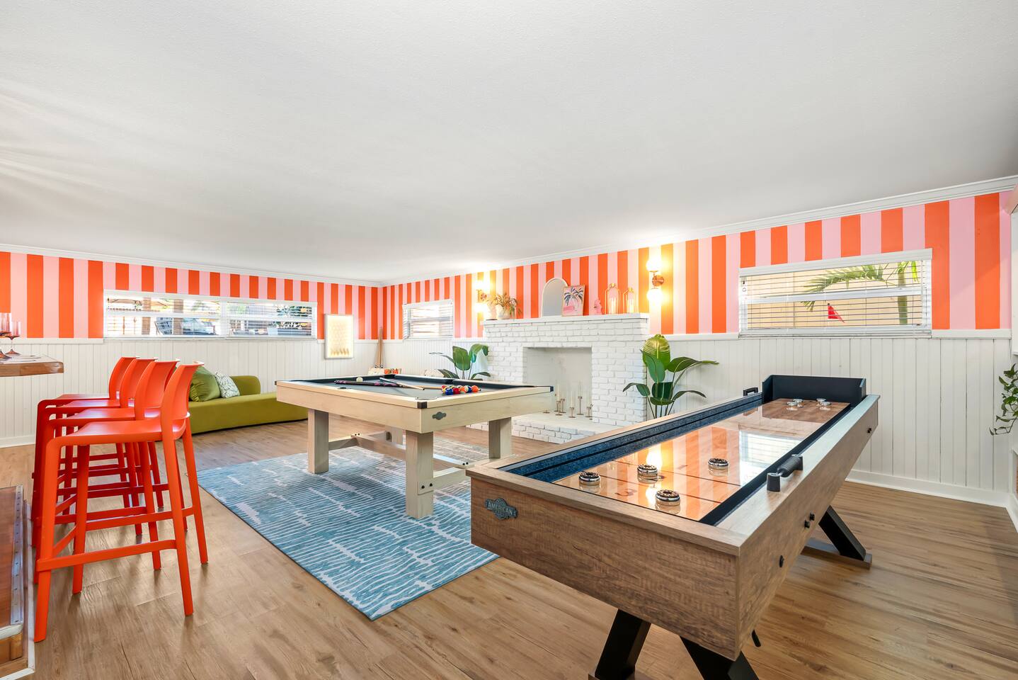 Just 5 minutes from the beach, Casa Palmera is a 3,100 sq ft luxury family retreat designed for effortless fun and connection. Lounge by the heated pool, play on the private pickleball + basketball court, or gather beneath the string-lit pergola to enjoy outdoor movies by the gas fire pit. The outdoor kitchen and covered dining set the scene for poolside meals and sunset cocktails. Inside, enjoy billiards, shuffleboard, and karaoke on the custom stage—where memories are made.