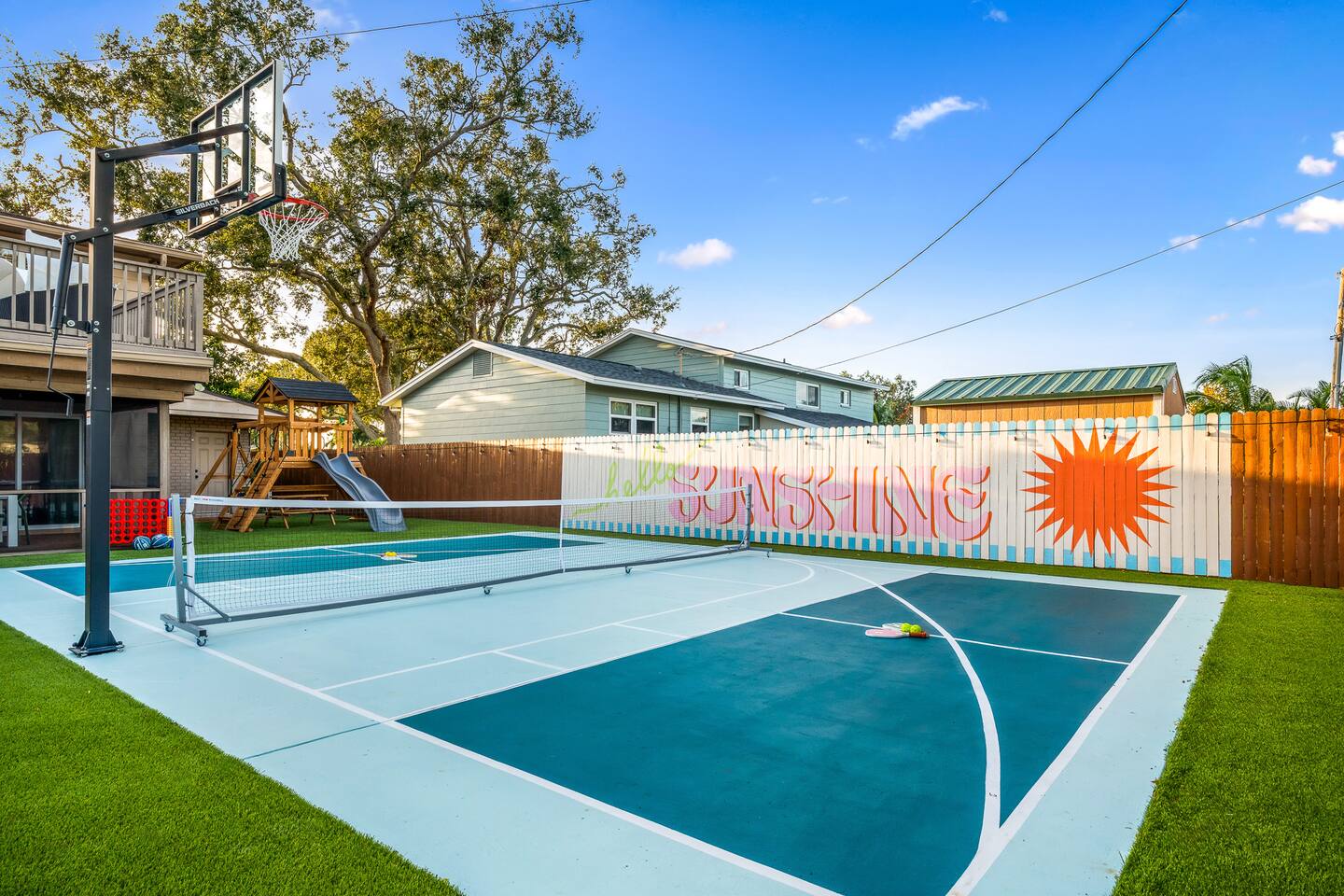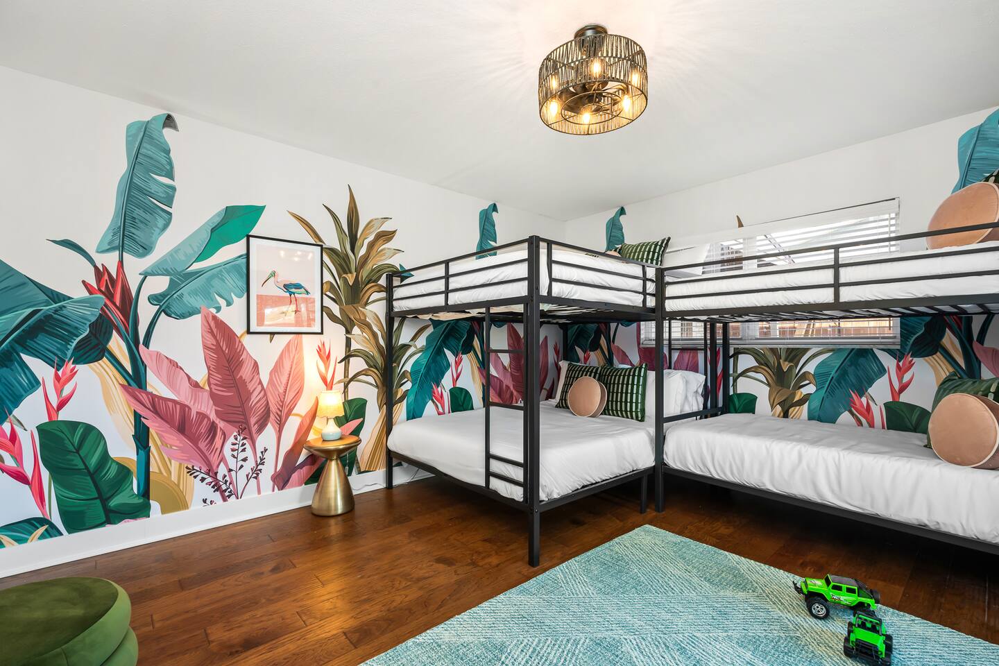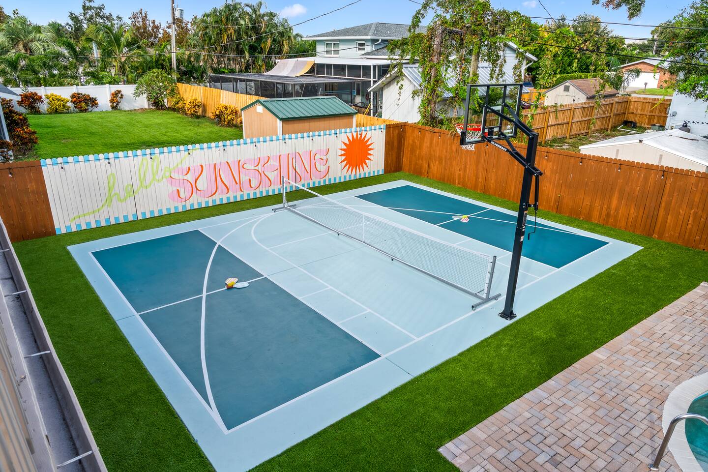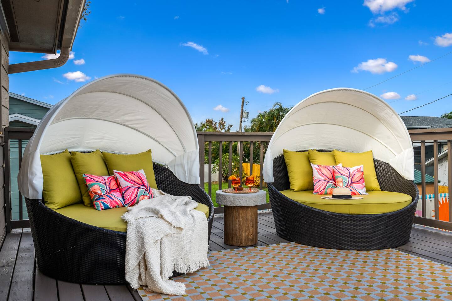 ✨ Thoughtfully designed across multiple levels, Casa Palmera offers room for everyone to unwind together or recharge in their own corner. 🛏 SLEEPING ARRANGEMENTS Four serene king bedrooms plus a playful bunk suite — all with smart TVs and luxe bedding for a restful wind-down: • King Suite 1 – spacious + calming • King Suite 2 – soft, relaxing retreat • King Suite 3 – light-filled + peaceful • King Suite 4 – tranquil hideaway • Bunk Suite – queen/queen + twin/twin (kid-favorite hangout) 🎤 ENTERTAINMENT & GATHERING SPACES • Game room with karaoke stage, billiards & shuffleboard • Open-concept chef's kitchen, dining, and living area • Upstairs deck with canopy-covered daybeds — ideal for morning coffee, a quiet read, or stargazing 🌿 OUTDOOR HIGHLIGHTS • Heated pool with shaded loungers • Twilight Cinema Lounge — pergola with outdoor theater + gas fire pit • Outdoor kitchen with grill & bar for poolside dining • Private pickleball & basketball court • Mini-golf + lawn games • Kids’ play gym & picnic spot 👶 FAMILY-FRIENDLY • High chair, toddler table, pack ’n play, toys & books • Beach-ready kit: chairs, umbrella, cooler, boogie board & sand toys • Curated board games 📍 LOCATION • 5 min → Indian Shores Beach • 10–12 min → Indian Rocks & John’s Pass • 20 min → Clearwater Beach & St. Pete Beach • Near local restaurants, ice-cream shops & family activities