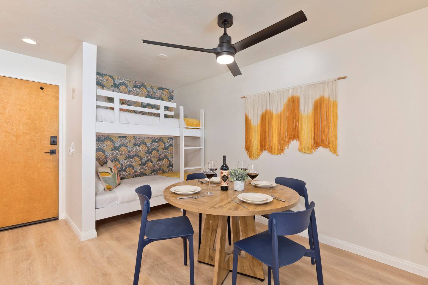 Welcome to Sierra Sol at Canyon, part of the WanderLight Retreats collection — a cozy, family-friendly mountain retreat in Mammoth Lakes. Enjoy true ski-out access beside Canyon Lodge and ski school. Uniquely sleeps 6 with a king bedroom, separate twin bunk alcove, and queen sofa bed. Inside: gas fireplace, Smart TVs, full kitchen, and private balcony. After skiing, relax in 2 hot tubs, the sauna, or seasonal heated pool before exploring The Village nearby.