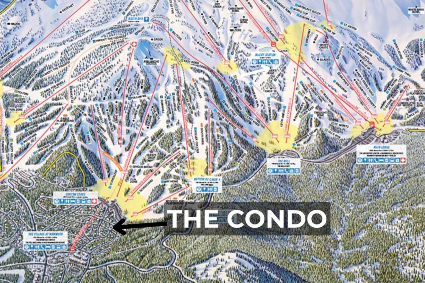 - Mammoth has a great FREE Shuttle Bus System with a stop right across the street to take you to the Village, Main or Eagle. No need to have a car! -You can also take the gondola at canyon lodge DIRECTLY into the village, no lift ticket needed! Village Gondola Fri–Sat, 8:00AM–5PM Sun–Thurs, 8:00AM–5PM -At Canyon Lodge there is a world class ski and snowboard school - you can walk there and return to the condo for lunch!