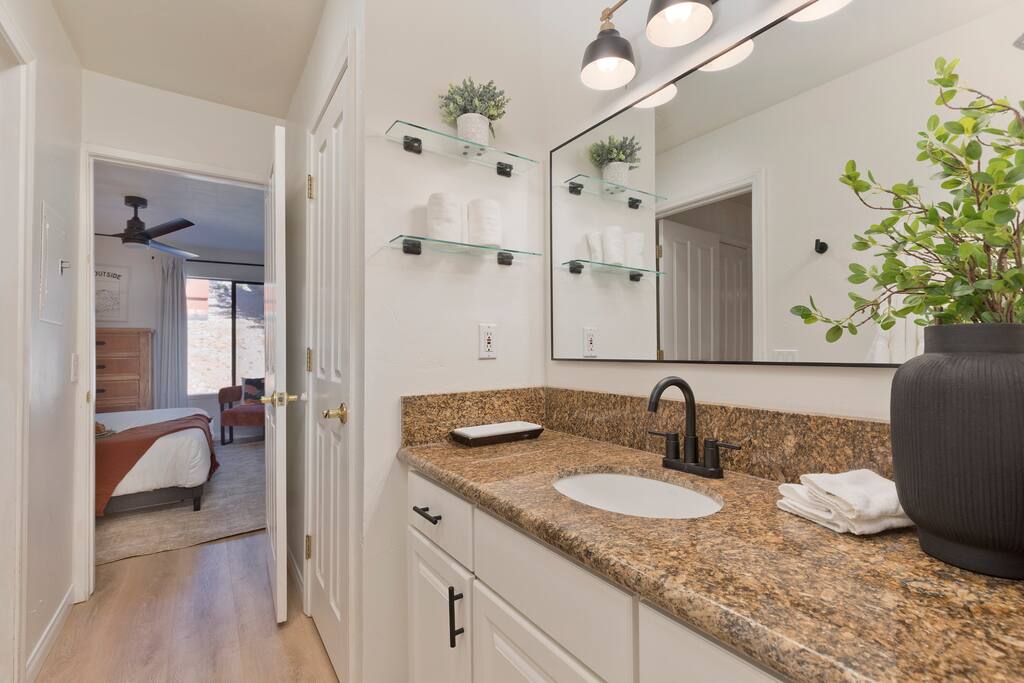 🛏 Bed Configuration • King bed in the bedroom (40” Smart TV) • Twin-over-twin bunk alcove (separate from bedroom) • Queen sofa sleeper in the living room (55” Smart TV) ⸻ 🏡 Inside the Condo • Fully equipped kitchen with stainless appliances, Keurig + drip coffee makers, slow cooker, and all the essentials for home-cooked meals • Gas fireplace and spa shower for relaxing after the slopes • Balcony with seating for morning coffee or après ski drinks • High-speed private WiFi • Board games, puzzles, books, and PlayStation 4 for cozy family nights ⸻ 🚗 Convenience • Covered garage parking space (no scraping snow off your car) • Private locked ski locker to store all your gear securely ⸻ 🌟 Common Area Amenities • 2 outdoor hot tubs (year-round) • Sauna with shower & bath • Recreation room with pool table, sofas, fireplace, and kitchenette • Heated pool (summer only) • Outdoor Weber gas BBQs (summer only) • Washers & dryers (card operated) ⸻ 📍 Location & Notes • Walk to Austria Hof for après ski cocktails or dinner • The Village is easy to reach via free shuttle, seasonal gondola, or a <1 mile drive • Summer/fall activities nearby: hiking, lakes, hot springs, golf, and fishing • Ski-in access is seasonal (Canyon Lodge typically open mid-December to mid-April) ⸻ 📝 Registration Details Town of Mammoth Lakes TOT Certificate: #9072 Business Tax Certificate: TOML-CPAN-15574